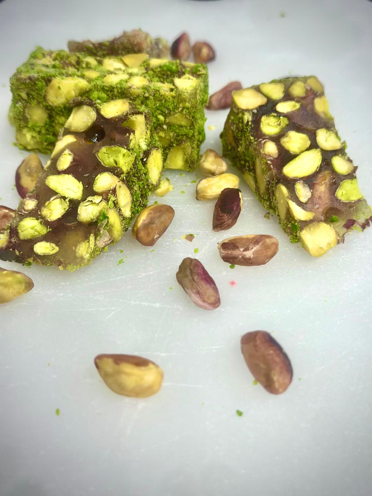 Oscar is geen gewone Turksfruit – het is een meesterwerk. Deze royaal gevulde bloklokum is rijk aan verse, groene Antep pistachenoten en ambachtelijk bereid volgens traditioneel recept. Elke hap biedt een perfecte balans tussen zachte textuur en nootachtige intensiteit.